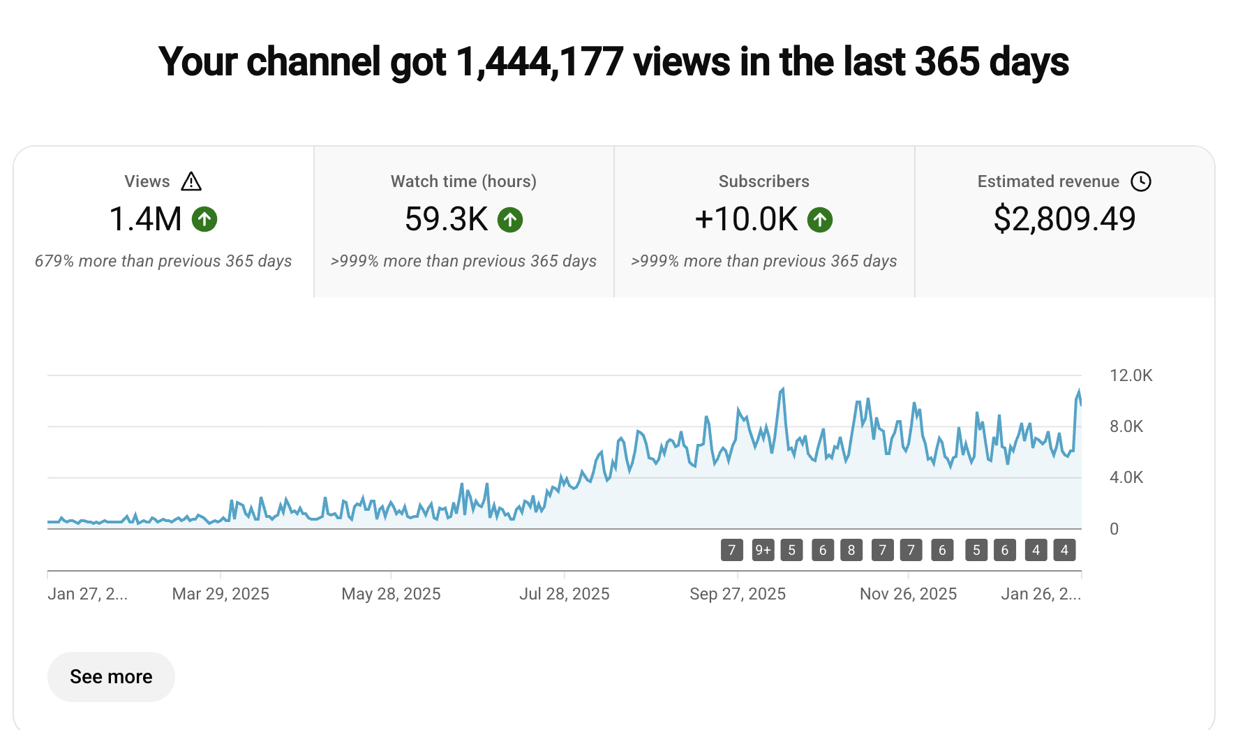 Most channels see early traction within the first 60–90 days, with stronger gains as videos mature.